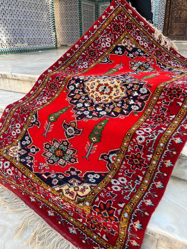 فرش دستبافت ابعاد۱۳۰در ۲متر گل ابریشم و پشم اعلا