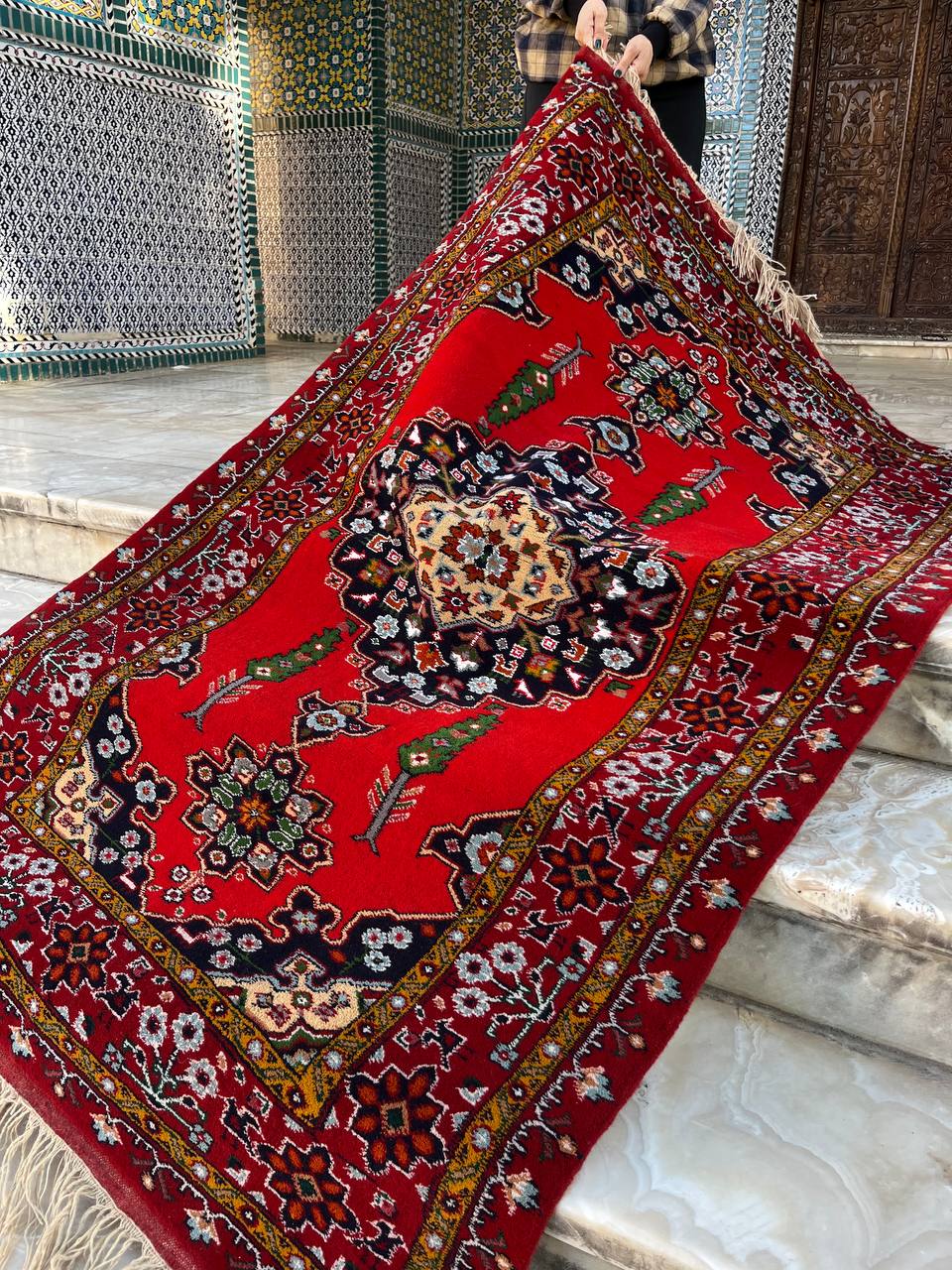 فرش دستبافت ابعاد۱۳۰در ۲متر گل ابریشم و پشم اعلا